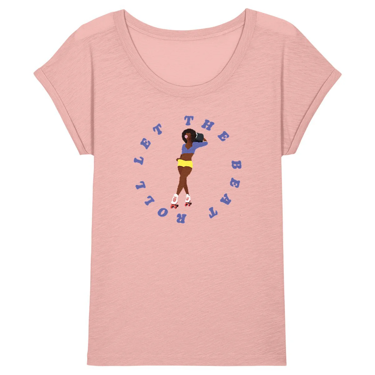 T-shirt Femme – Manches retroussées – 100% Coton BIO – Let the beat roll