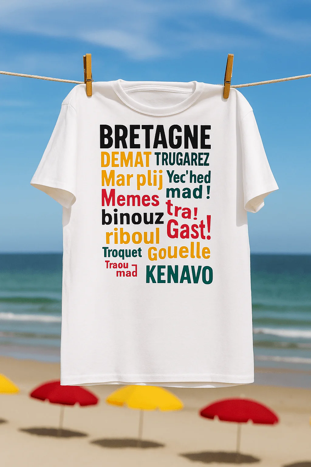 T-shirt Bretagne, t-shirt breton, typographie bretonne, expressions bretonnes, troquet, bistrot, Kenavo, Yec’hed mat, cadeau Bretagne, unisexe.