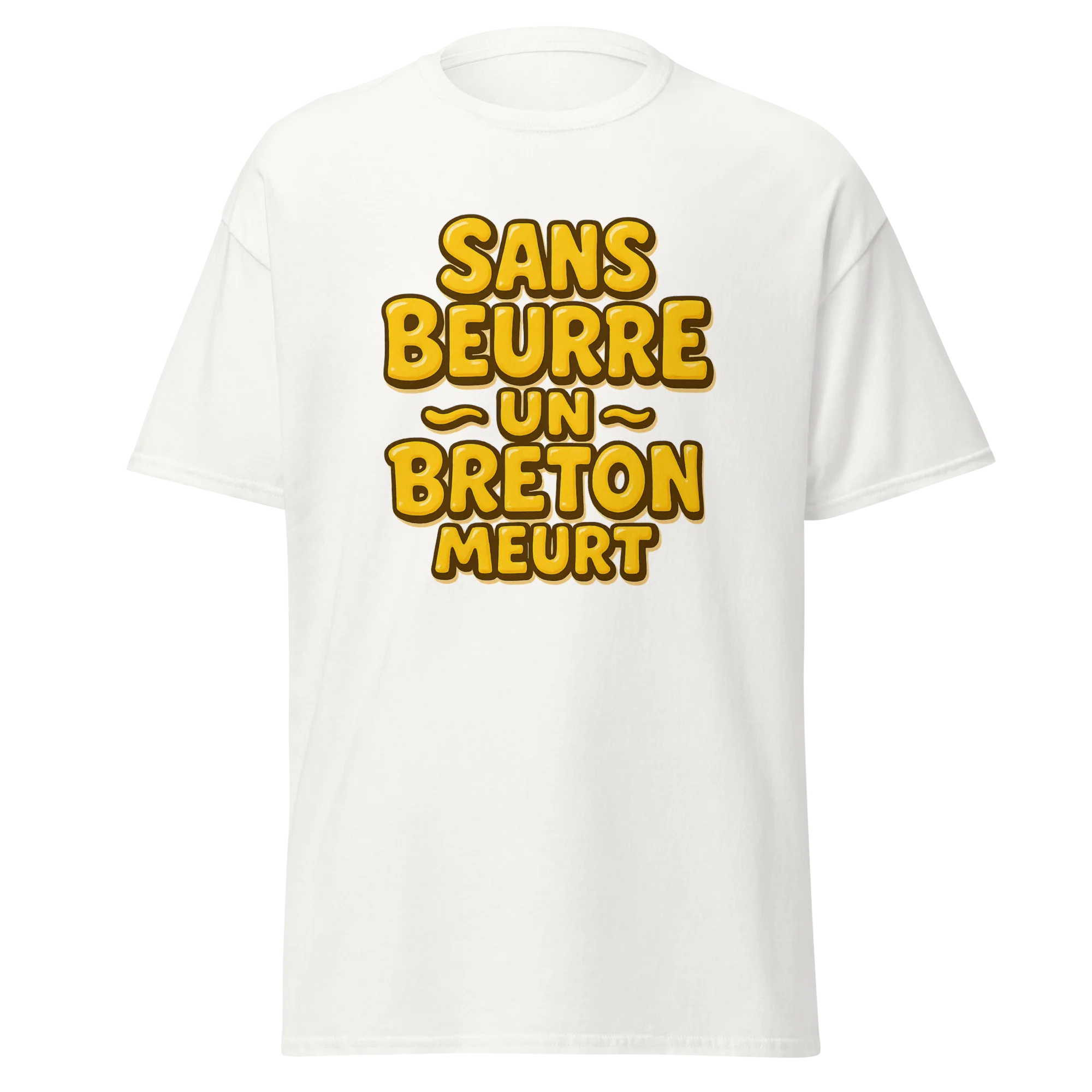 Quand on aime la Bretagne, on aime (un peu beaucoup) le beurre salé. Avec ce t-shirt « Sans Beurre, un Breton Meurt », affichez fièrement votre dépendance officielle au beurre… et votre sens de l’humour breton !