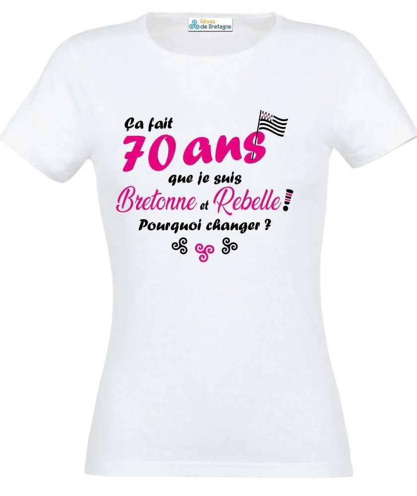Tee-shirt Anniversaire Bretonne et Rebelle 40 à 70 ans