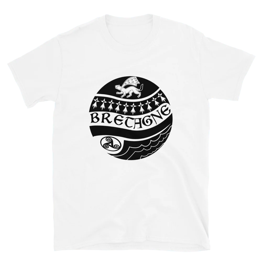 Tee-shirt Breton avec illustration originale qui reprend les symboles de la Bretagne comme les Hermines, le Triskell et les vagues de la mer.