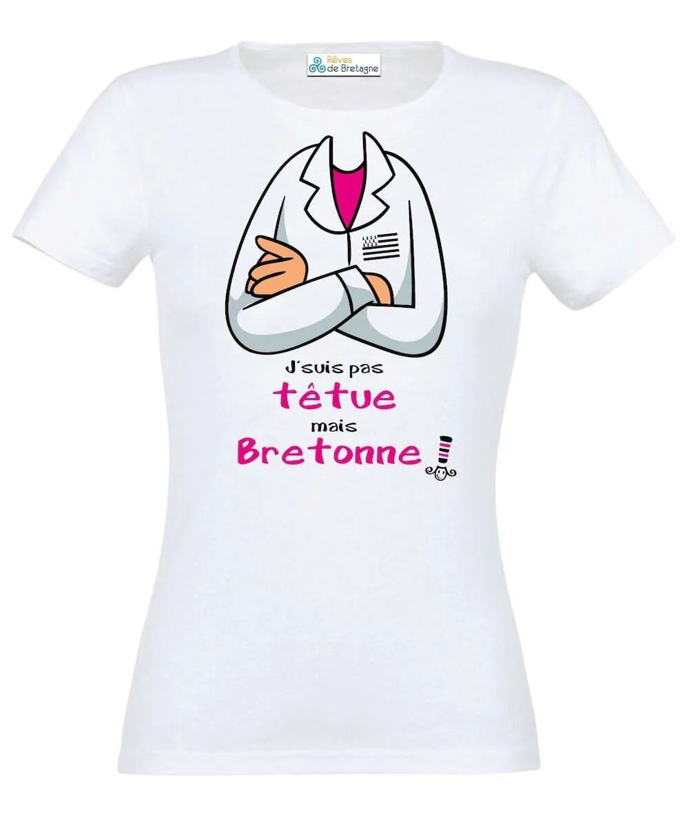 Tee-shirt Breton Blanc manches courtes avec visuel « J’suis pas Têtue Mais Bretonne »