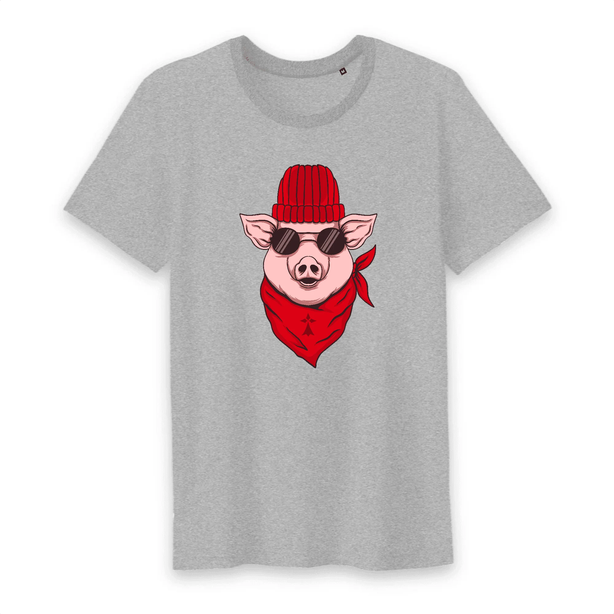 Tee-shirt Homme Col rond Cochon Bonnet Rouge en 100% Coton BIO