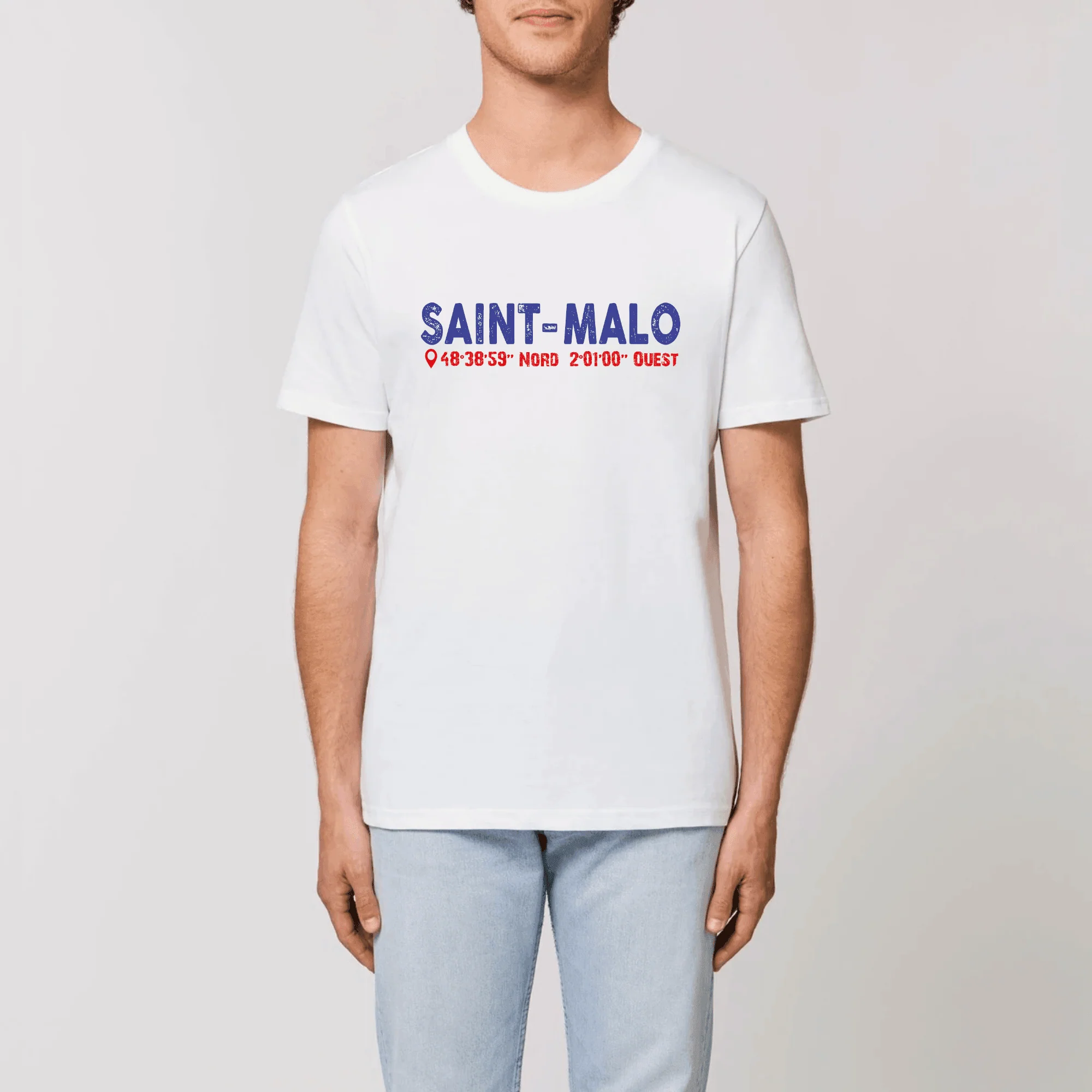 Tee-shirt coton Bio unisexe avec SAINT-MALO et sa Latitude et Longitude