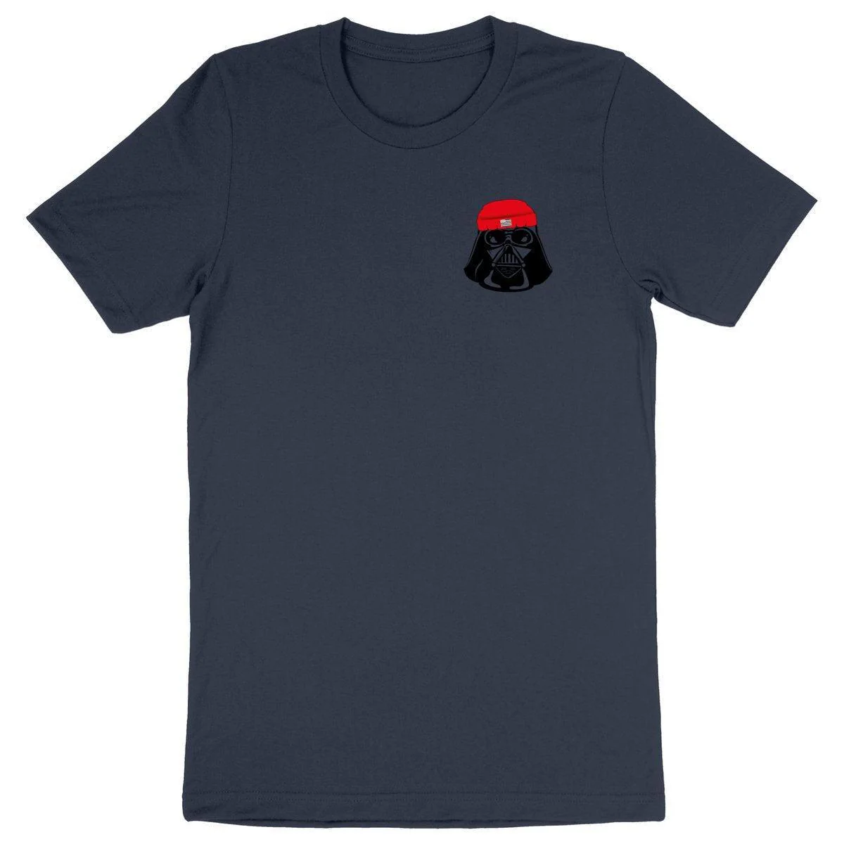 Tee-Shirt Dark Vador Bonnet Rouge. Un t-shirt breton en coton bio arborant fièrement le célèbre Dark Vador coiffé d’un bonnet rouge avec un drapeau Breton.