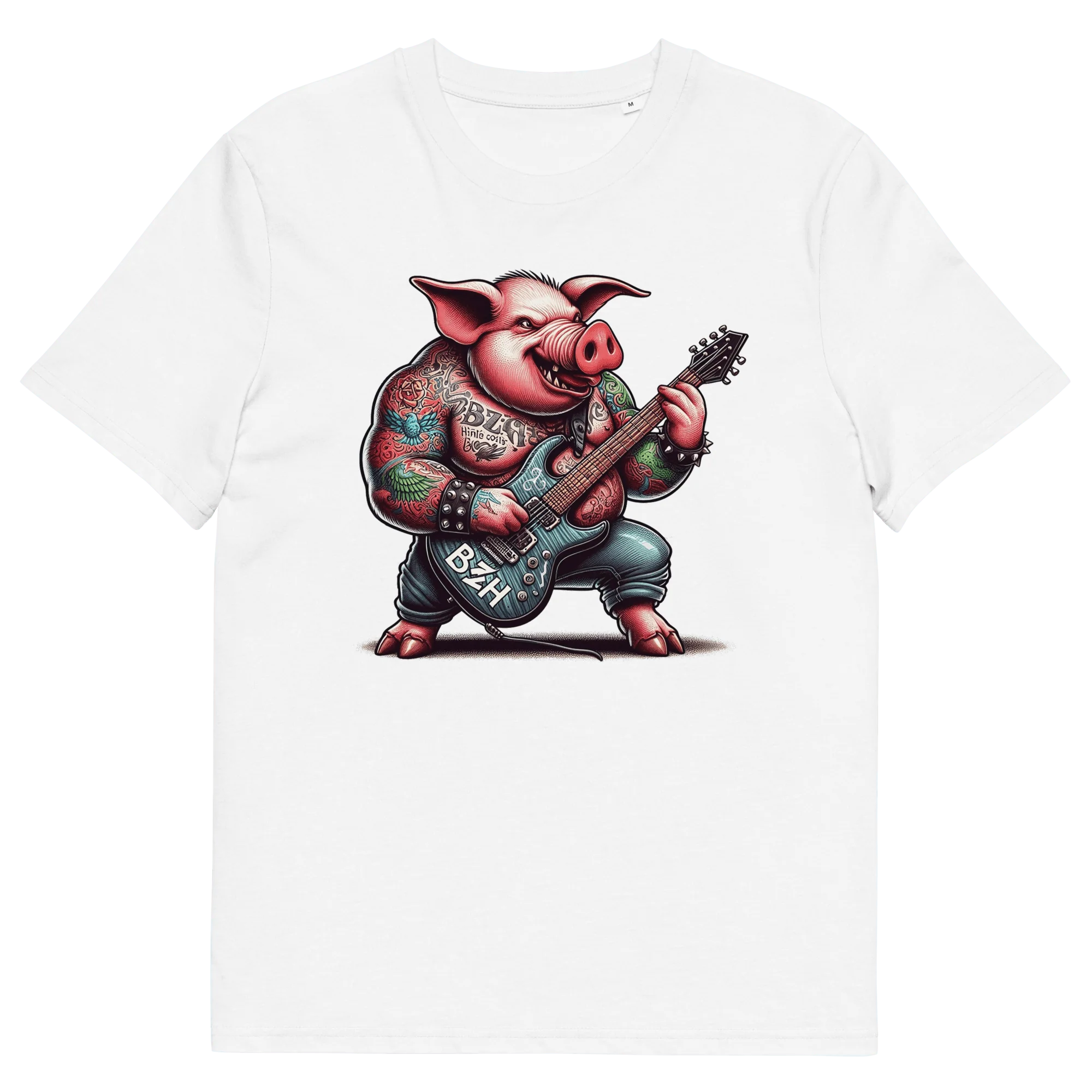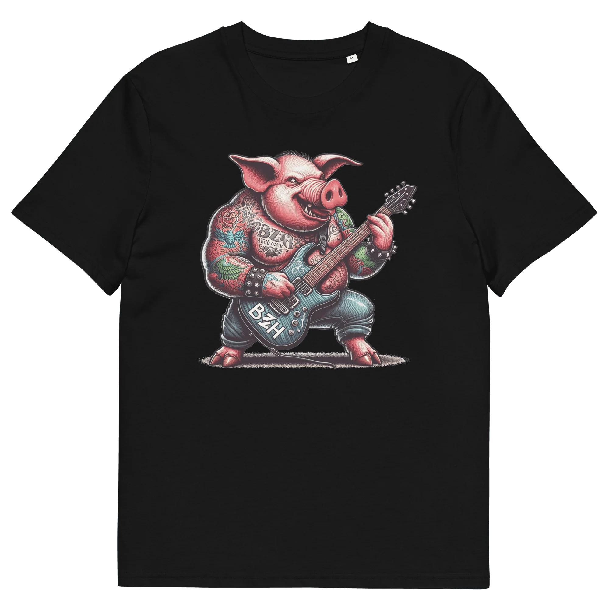 Découvrez notre t-shirt original mettant en scène un cochon rocker tatoué, jouant de la guitare électrique avec les symboles bretons BZH et triskell. Un design unique qui allie humour et fierté régionale !