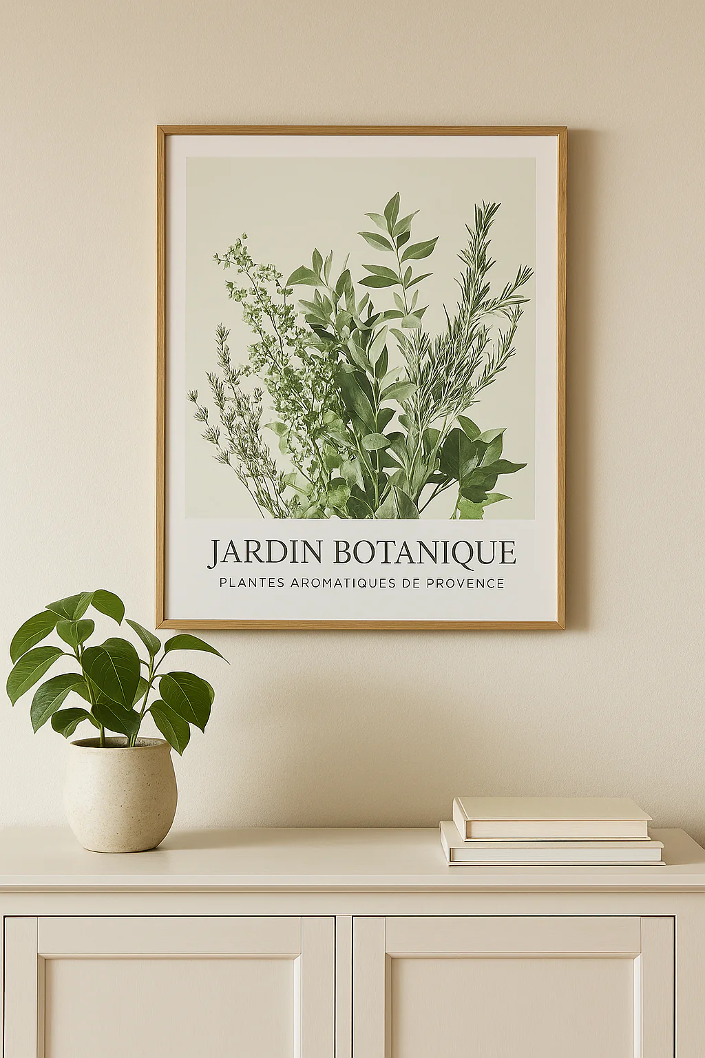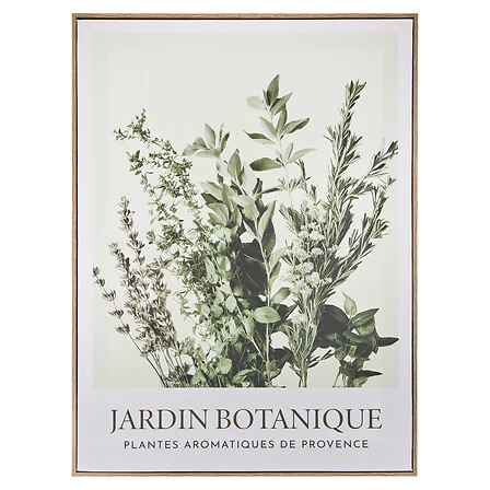 Le tableau Cecilia apporte une touche végétale et apaisante à votre intérieur. Avec son illustration botanique représentant des plantes aromatiques de Provence, il insuffle un esprit naturel et élégant à votre décoration. Ses tons verts délicats et son encadrement sobre en bois clair en font une pièce facile à intégrer dans un salon, une cuisine ou une chambre.