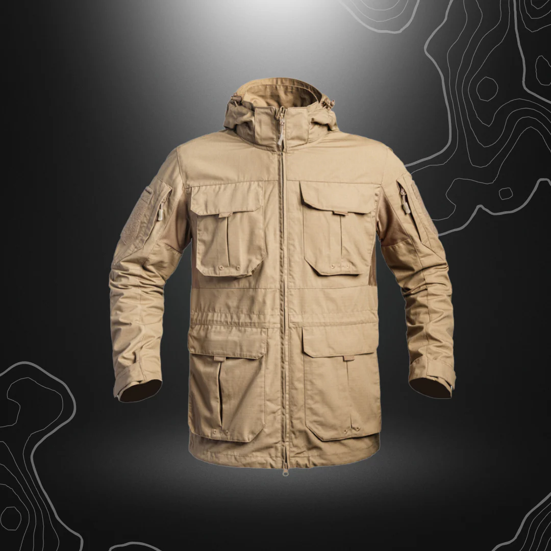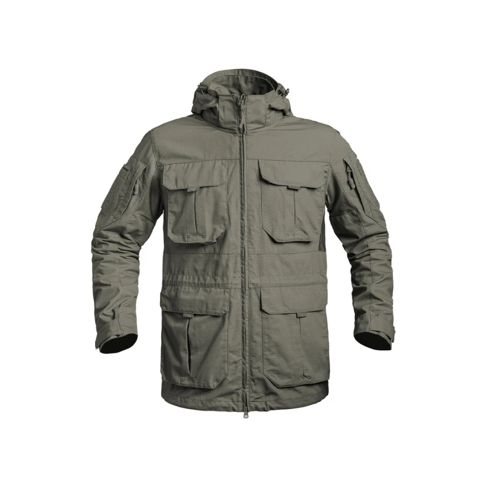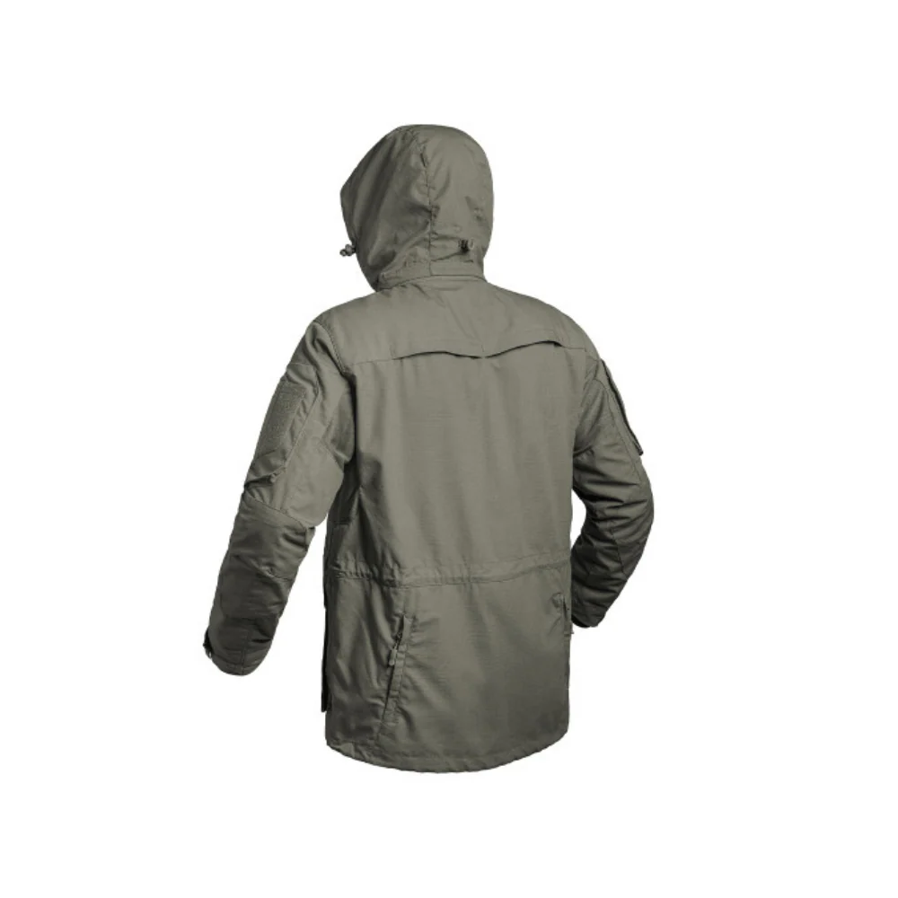 Fabriquée en tissu Ripstop 5.0, la veste longue FIGHTER possède une capuche amovible et de nombreuses poches avec un grand volume de rangement. Grâce à sa coupe parfaitement étudiée et ses aérations au dos et aux aisselles, vous pouvez évoluer sur tous les types de terrain avec un confort et une liberté de mouvement optimal. Le plus, la surface du tissu Ripstop extérieur possède un double traitement TEFLON et IR-PROTECT – Infra Red Protection – qui en fait un allié indispensable du combattant.