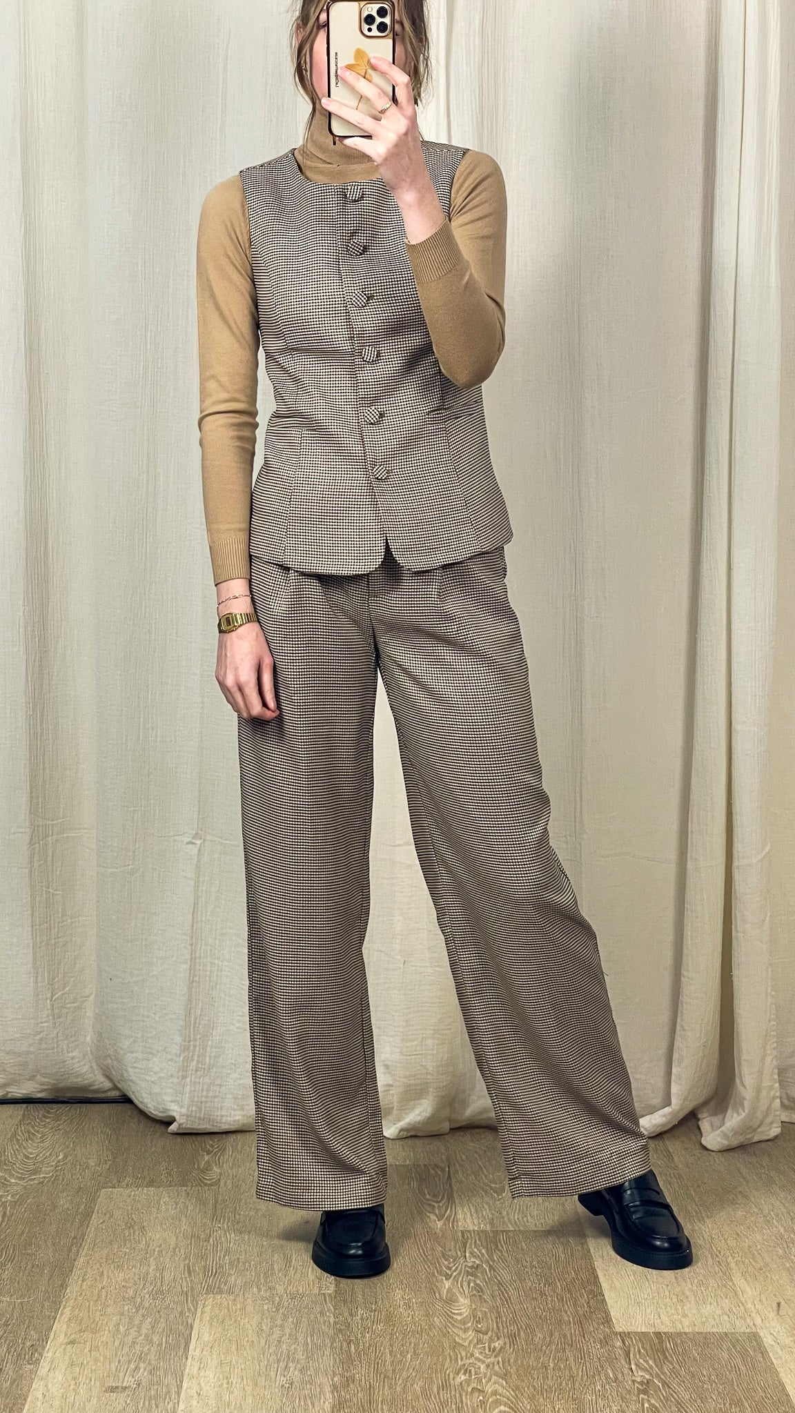 Portez la Veste Prince sur un col roulé pour un look chic et affirmé, ou osez l’ensemble coordonné pour une allure working girl ultra tendance. Elle se marie aussi parfaitement avec un jean brut pour casser son côté tailoring avec une touche plus casual.