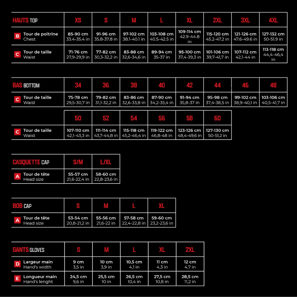 TAILLES : du XS au 3XL